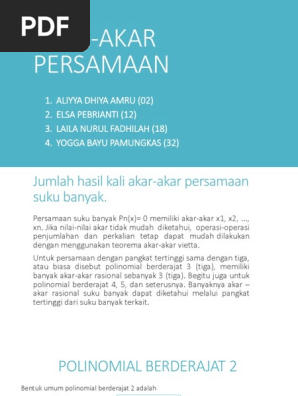 Terima kasih atas komentar yang telah anda berikan. Diketahui akar yang satu merupakan dua kali akar lainnya. .akar polinomial klik salah satu judul yang cocok, kemudian untuk link download jumlah dan hasil kali akar polinomial ada di halaman berikutnya. Persamaan suku banyak berderajat dua. Slamat datang di blog paling bermanfaat sedunia.